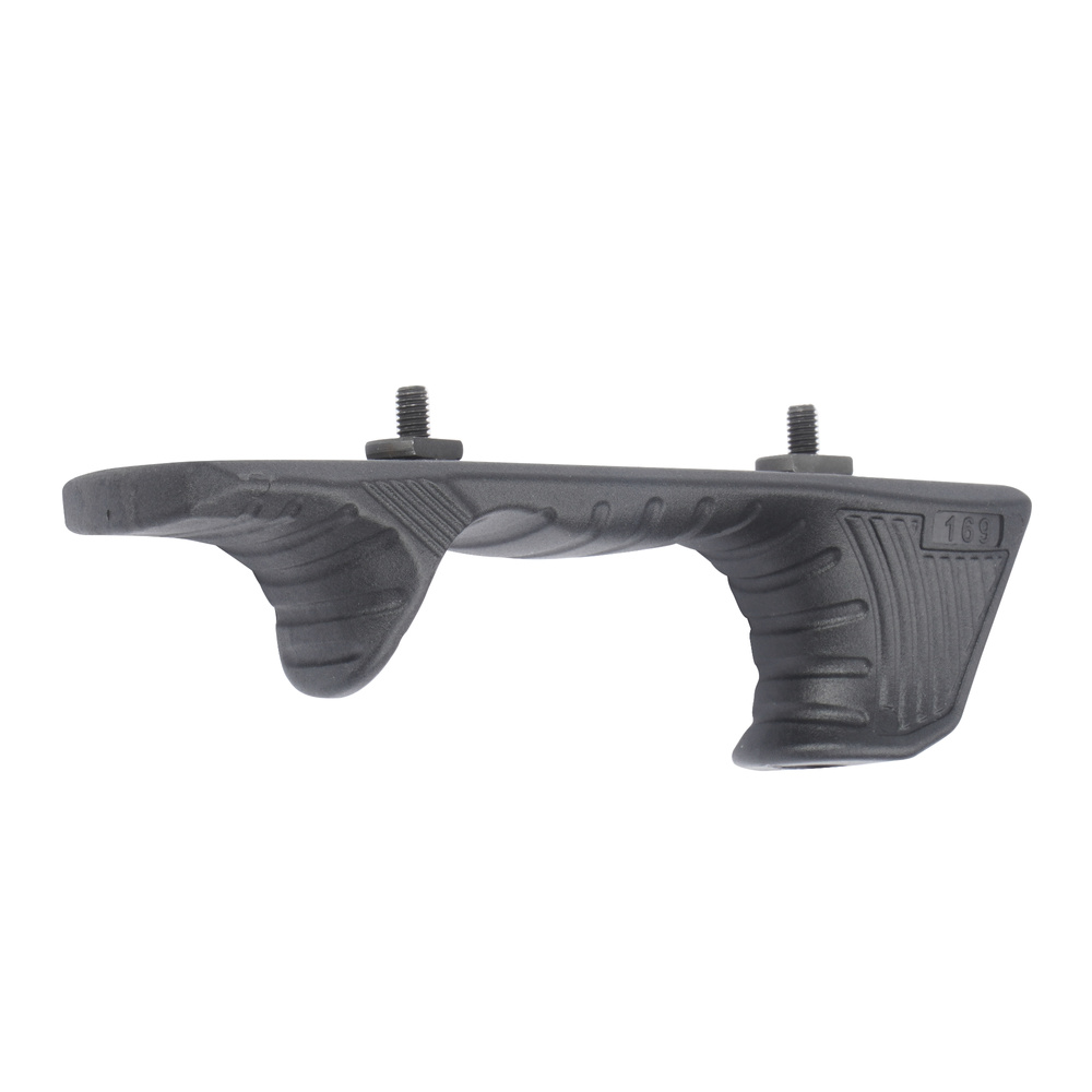 DLG-169 grip restrictor with M-LOK standard mounting. It forces the correct position and allows for a secure hand grip thanks to its ergonomic profile. The cuts on the surface of the restrictor create a non-slip texture that supports a stable grip on the weapon. The base features a QD socket for mounting a tactical sling. The grip protector protects the hand from burns by preventing it from sliding onto the barrel and allows the weapon to be braced against the edge of the cover.