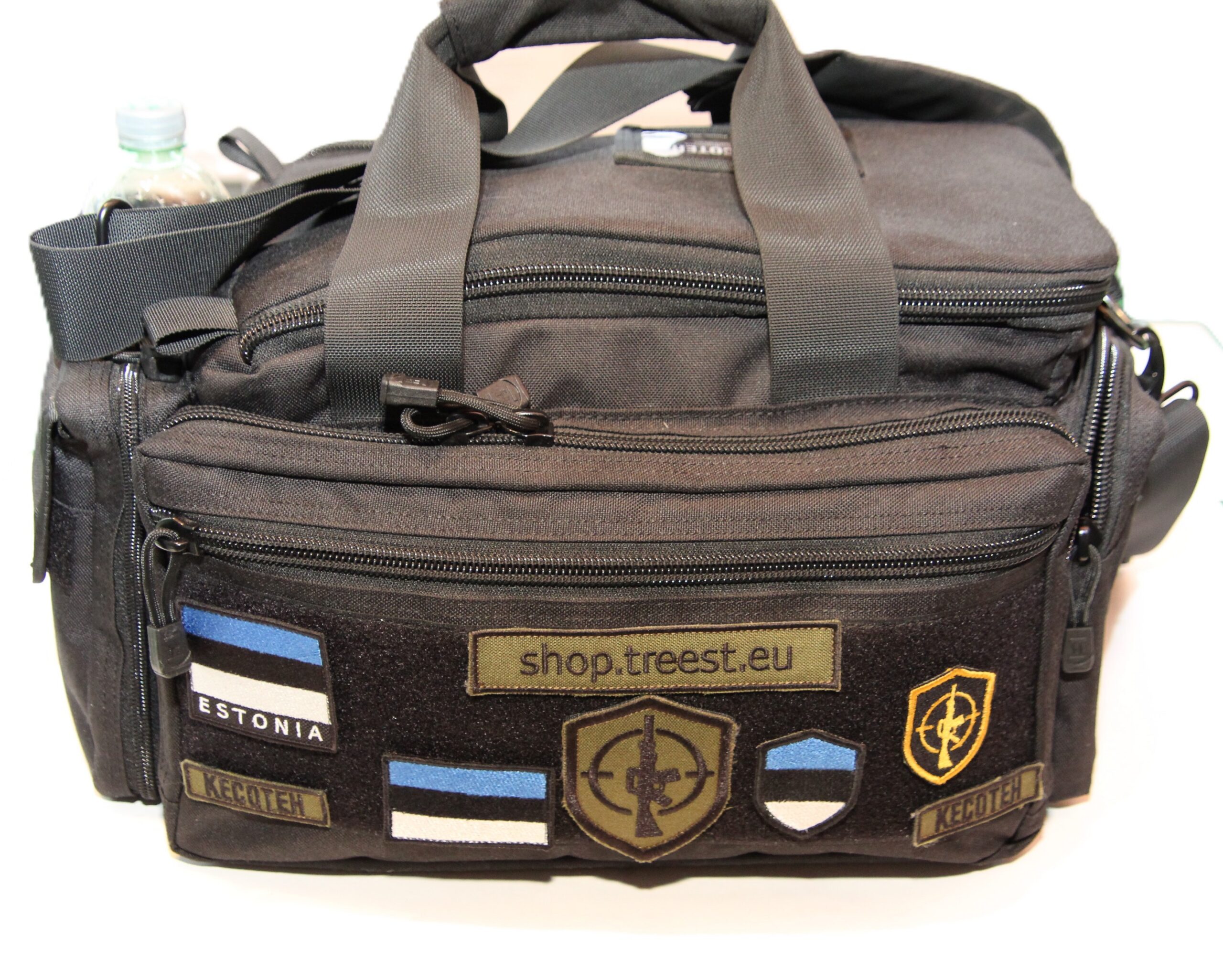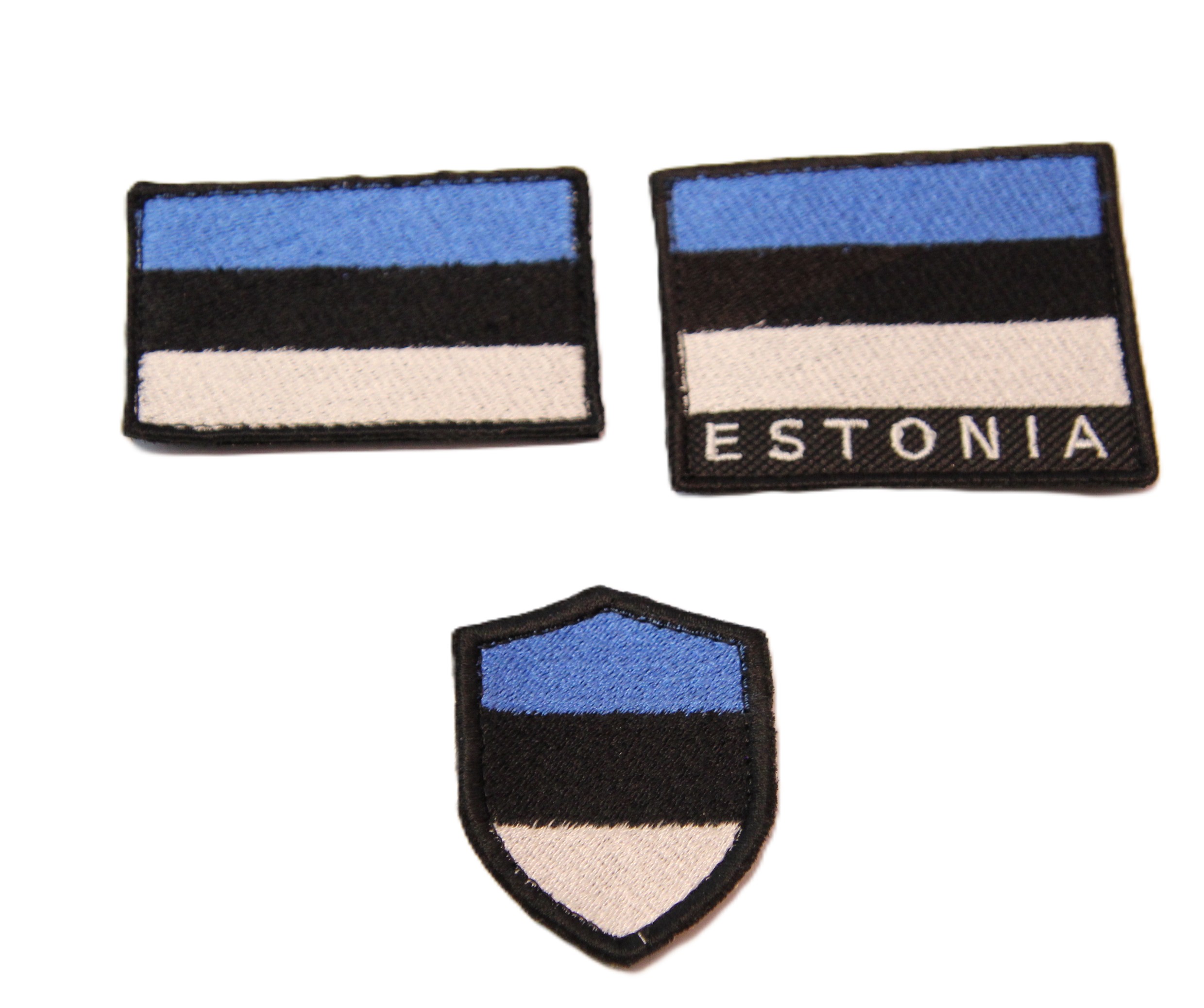 Sini-must-valge Eesti lipp on valmistatud vastupidavast materjalist embleem takjaga.