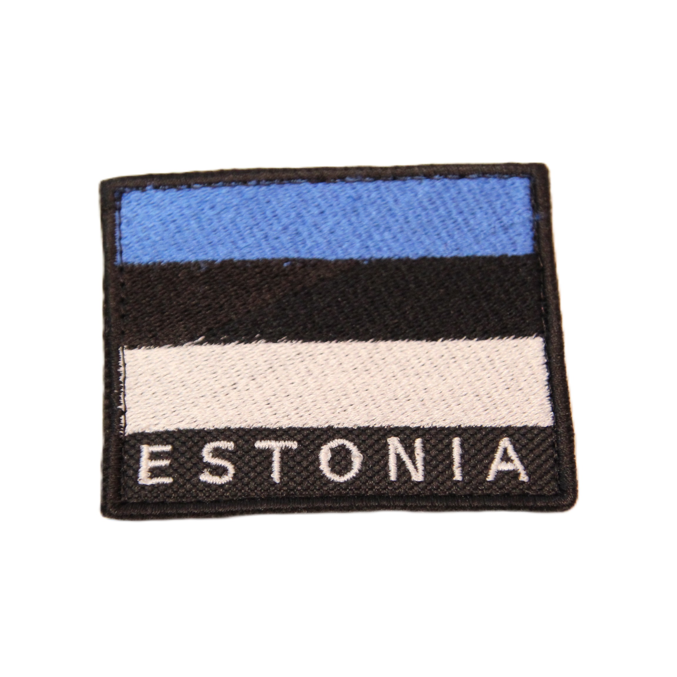 Sini-must-valge Eesti lipp ESTONIA on valmistatud vastupidavast materjalist embleem takjaga.
