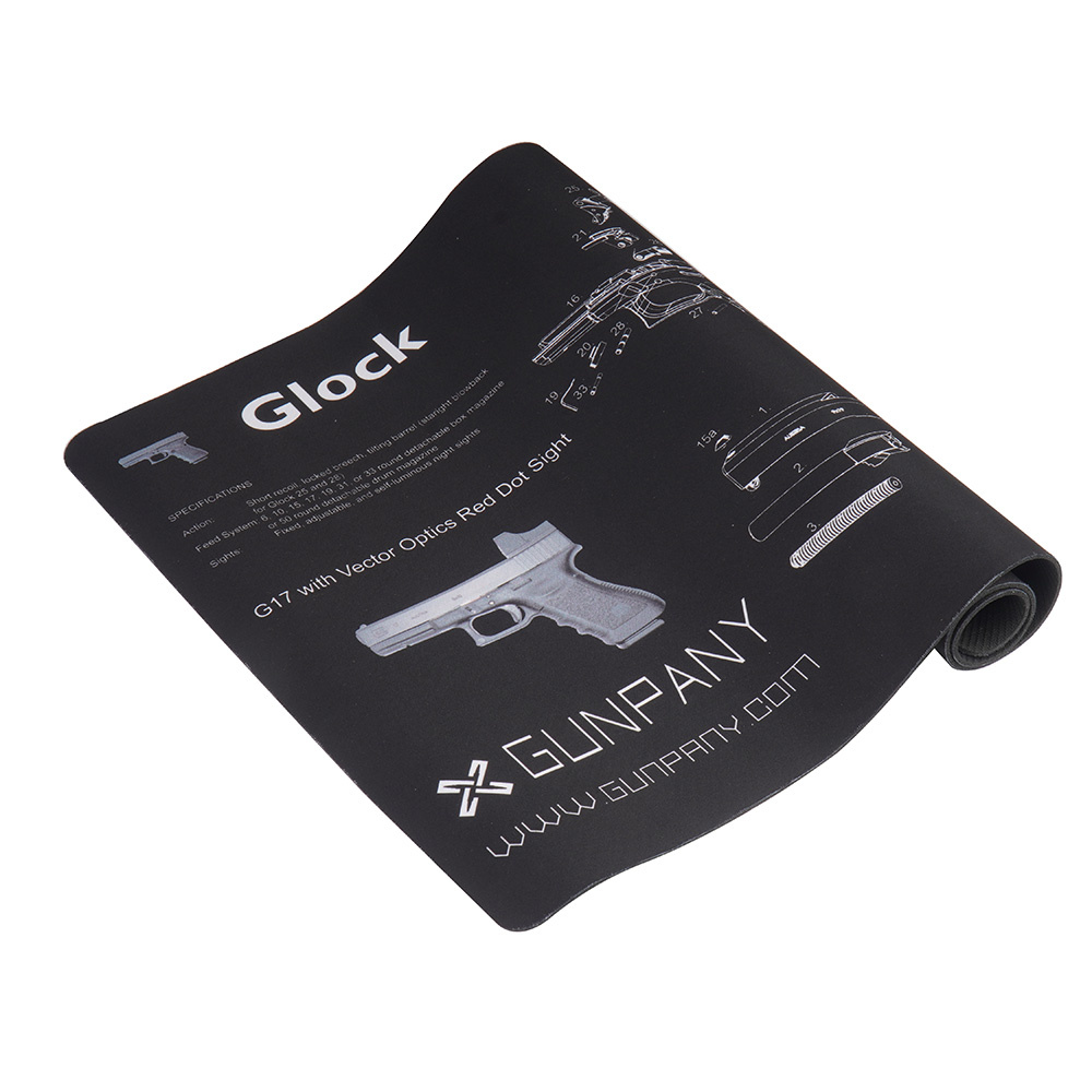 Matil on relva lahtivõtmise ja kokkupaneku hõlpsasti loetav skeem, mis lihtsustab osade tuvastamist ja kokkupanekut. Graafikul on kujutatud kollimaatoriga Glock 17 püstoli mudelit. 50,5 × 31 cm formaat pakub piisavalt tööruumi ning kogu asi on kergesti kokku rullitav ja hoiustatav.