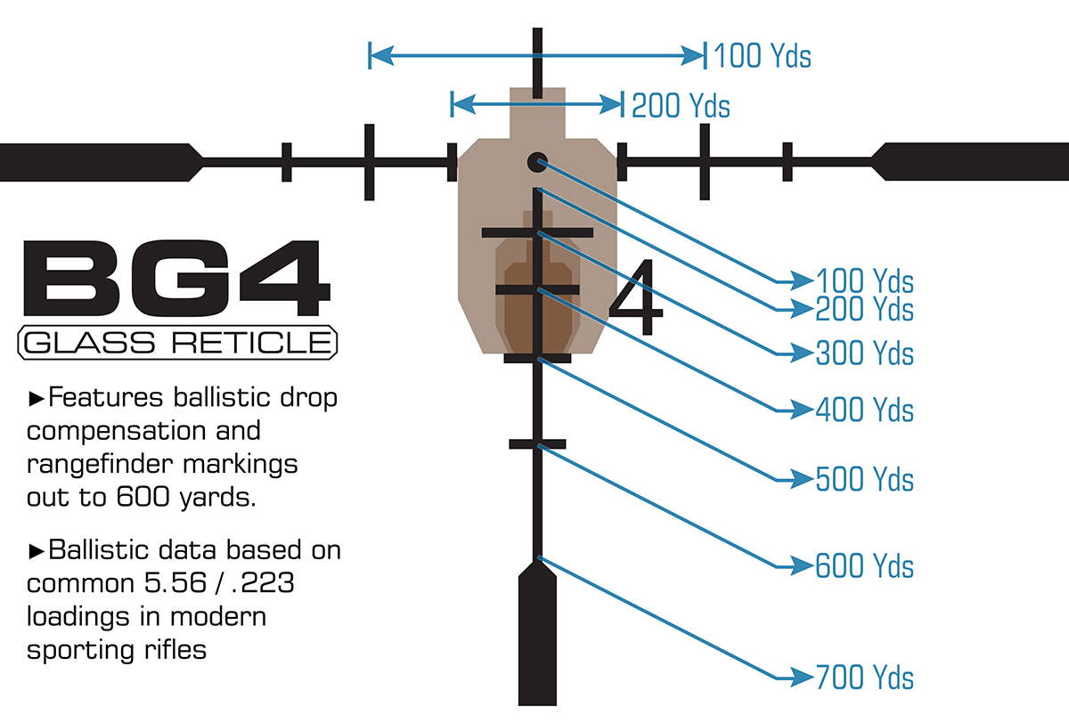 1-8X28 kaliibriga sihik, mis on mõeldud kasutamiseks lühikestel ja keskmistel distantsidel, peamiselt dünaamiliseks laskmiseks. BG4 sihik paigutati teisele fookustasandile. Selle sihiku ligikaudne suurendus on 1–8x. Sellel on mugavad trumlid nii vertikaalseks kui ka horisontaalseks reguleerimiseks.