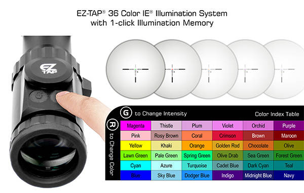 See on varustatud punase, rohelise või mis tahes muu RGB-paleti värvi valgustatud sihikuga. Sellel on 36 värvi ja intensiivsust. Toiteallikaks on üks CR2032 patarei. Taustvalgustust juhitakse kahe nupu abil.