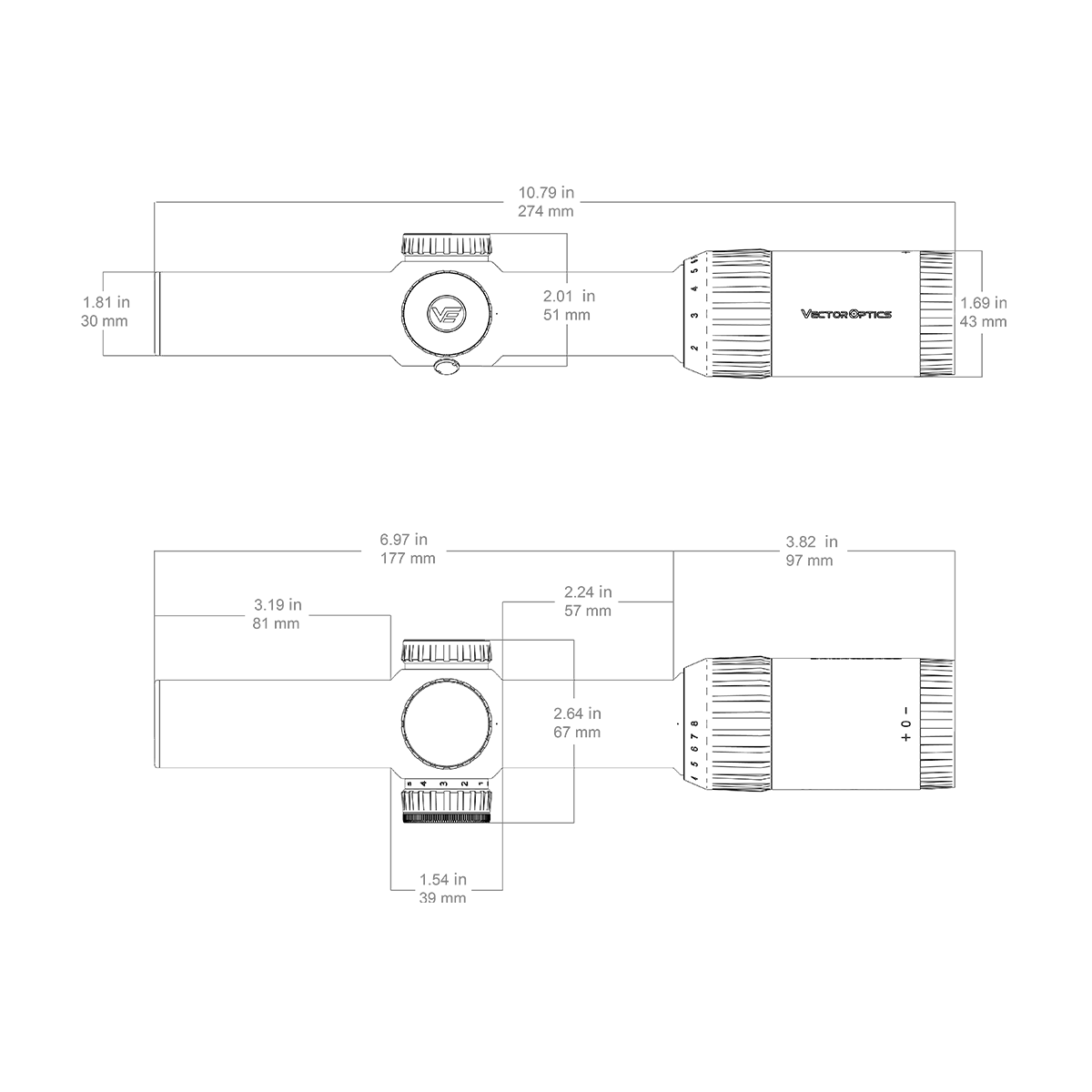 - 1/10 MIL klõpsuväärtus võimaldab täpset sihiku joondamist